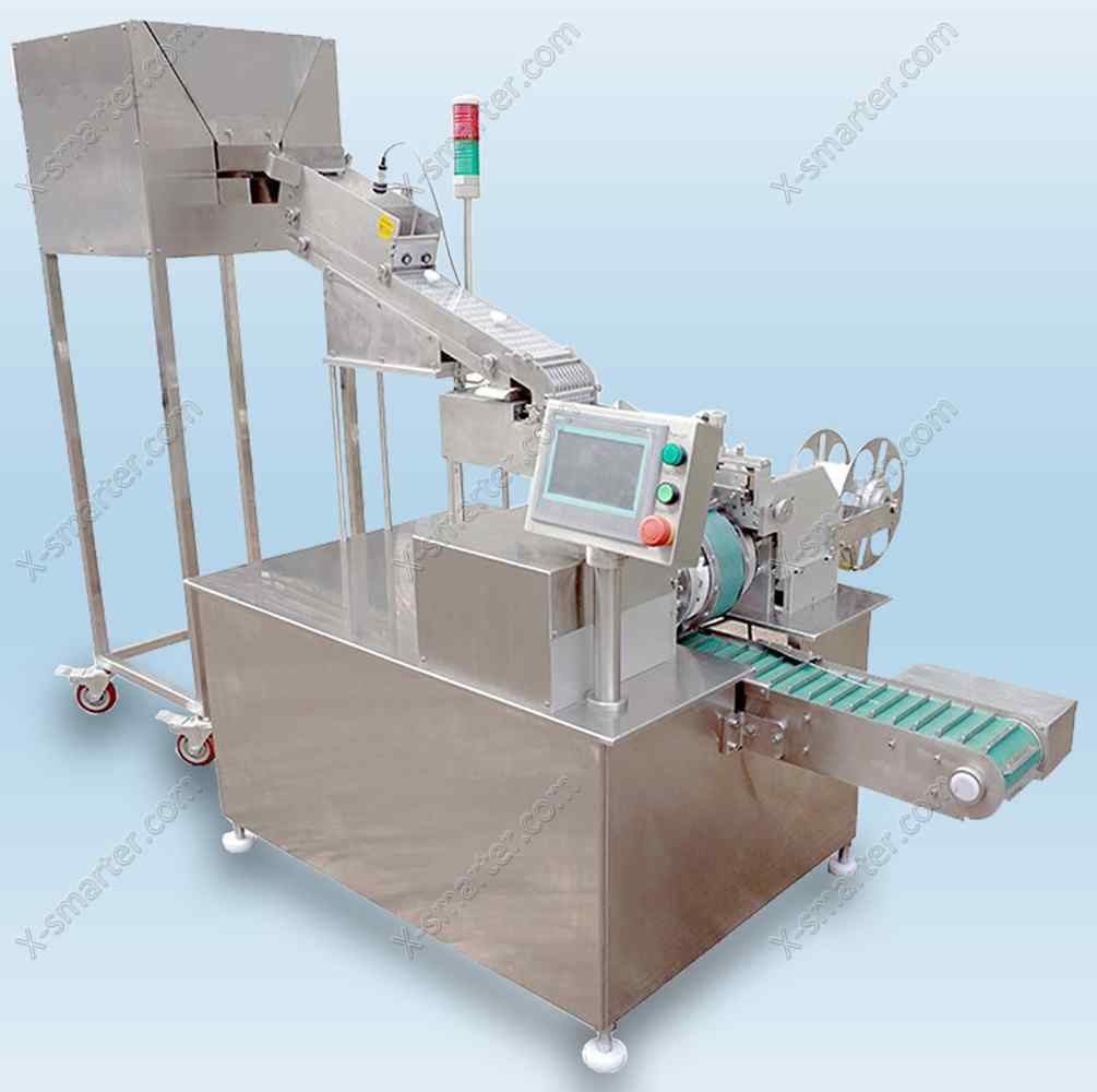 Effervescent Tablet wrapping (Aluminium Foil Paper) Packaging Machine Z40, it will be used for packing big tablets in one row with paper or aluminum material. it adopts high precise indexing mechanism, speed regulating motor, stepping motor, photoelectric sensor, proximity switch and PLC centralized control,It can automatically give alarms and shut down in case of no tablets or paper, and it running stable, easy to operate and maintain. All components that touch with the tablets is made of superior 316 stainless steel, which totally meets the GMP requirement.